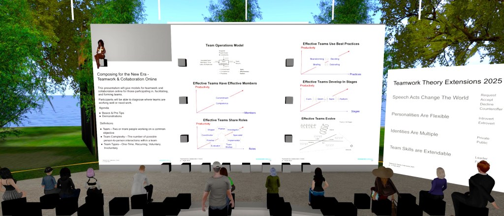 A quick check-in with the three teams revealed that all had selected the UN SDG they will work on. The next task is to start researching the detail of the SDG and begin to identify an appropriate narrative for the preenetation. The first building class will be held next Saturday by Builder’s Brewery so it is importatnt to attend that. Here is the link to the Landmark in SL.