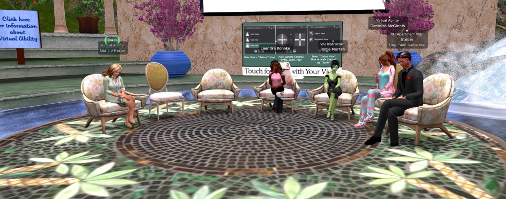 Virtual Ability (VAI) is an international cross-disability peer support community of over 1,300 members. We’re international because the people in the community come from 6 continents. “Cross-disability” means our members who have disabilities may have a physical disability, a mental or emotional or developmental disability, or a sensory disability (deafness or blindness). Many of us have multiple disabilities. We offer peer support as well as education, acceptance and understanding. Our community assists people with all kinds of disabilities to enter and thrive in virtual worlds like Second Life and other virtual worlds.