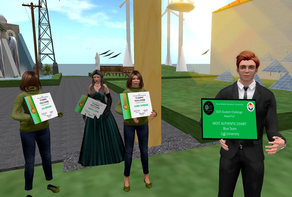 The student teams have been working hard on their projects for the last two weeks and today we finally saw their completed presentations. Çağla Solak, aka Merino, joined us to record the videos for each team and also made a really nice introduction to the student Team Projects for the VWEC Student Challenge. All the team members were present and took part in the tour of their builds and the presentations. The work was very impressive and the performances were word perfect and delivered with confidence and professionalism. Amber Selenium also joined us to take the team photos.