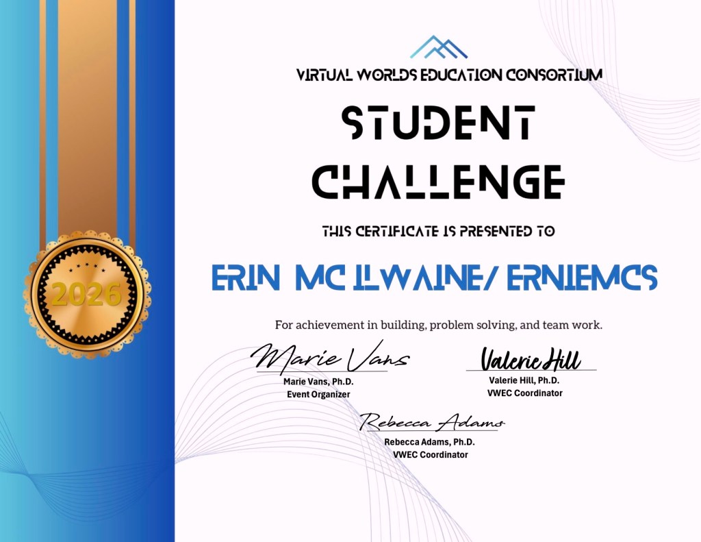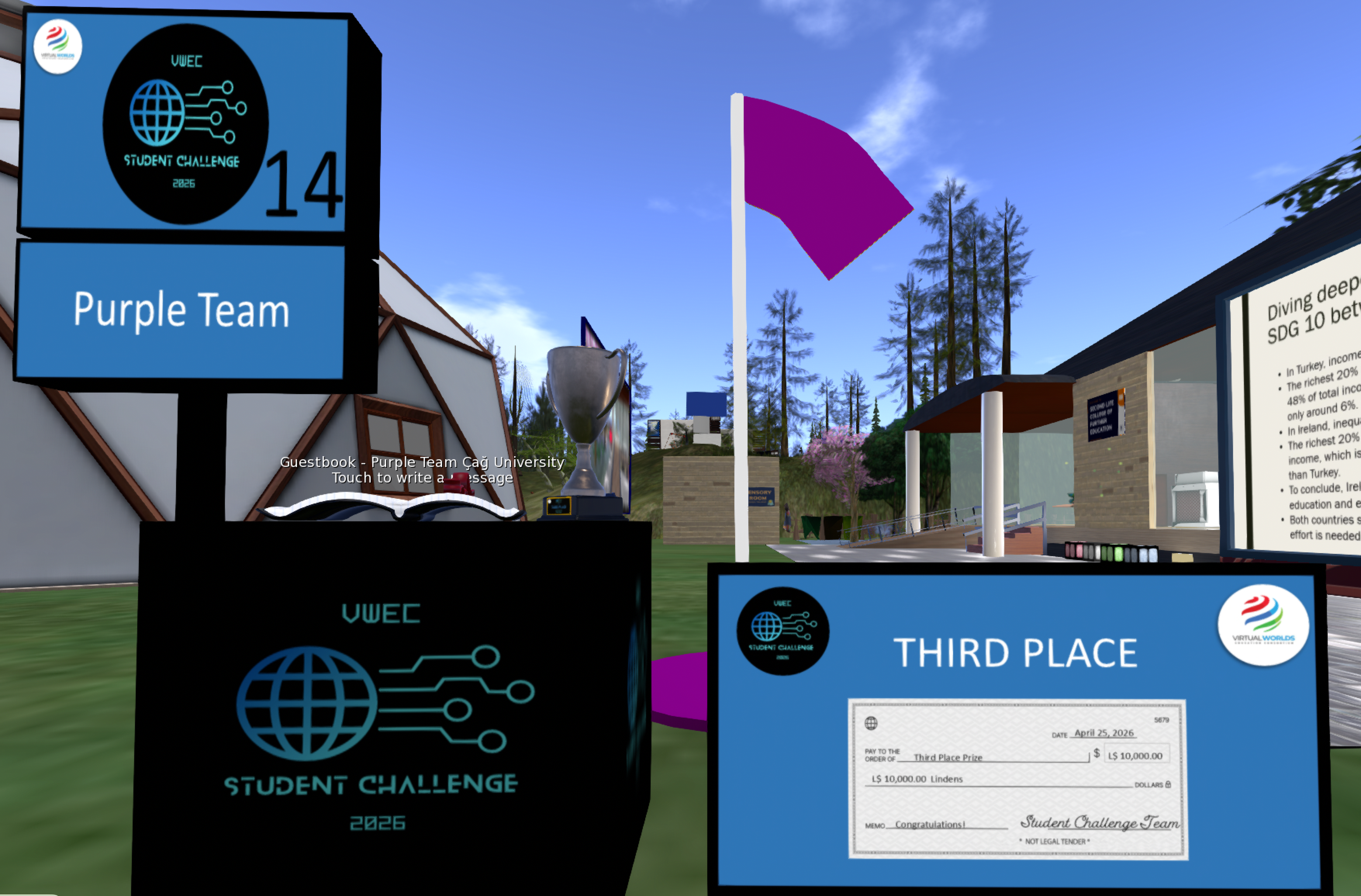 February 3, 2026Classes commence on Monday 9th February and we will meet every Monday thereafter. This semester we will take on the VWEC Student Challenge with teams made up of students from TU Dublin in Ireland, Çağ University in Tükiye, and Technical University of Cluj-Napoca in Romania. Instructors will include John O’Connor in Dublin; Murat Gülmez and Çağla Solak in Türkiye; and Lia Pop in Romania. There will also be guest speakers making presentations and hosting site visits across Second Life throughout the semester as we explore technology and society. There will be additional class meetings on some Saturdays for support in the Student Challenge.