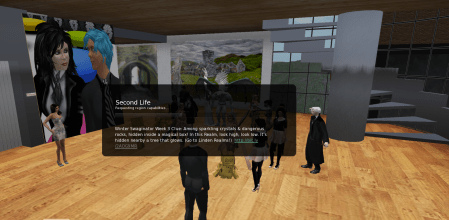Locks Aichi joined the class for the presentations by each team this week. A variety of approaches was taken including YouTube videos, Google Slide show to illustrate presentations in the classroom and finally, a visit to another location in SL which did not turn out as expected. The group gave us a link to a shopping centre to open their talk with a demonstration. Unfortunately, the owner was online when all thirty of us teleported there simultaneously and she assumed it was a griefing attack! After some serious confusion and much swearing on her part we returned to DIT. An explanation was sent to the shopkeeper by IM and the incident was concluded without any further rancour. It provided an excellent learning opportunity for the final meeting of our group – always ask permission before visiting someone else’s virtual space with a group – much as you would in Real Life. To be fair to the student team it had visited the location during the week and found it deserted and quite reasonably expected the same for our visit.