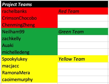 Finally, John posted the team members for the Team Project. In the next class we will consider the brief for the project and answer any questions you have about working on it for the rest of the semester.