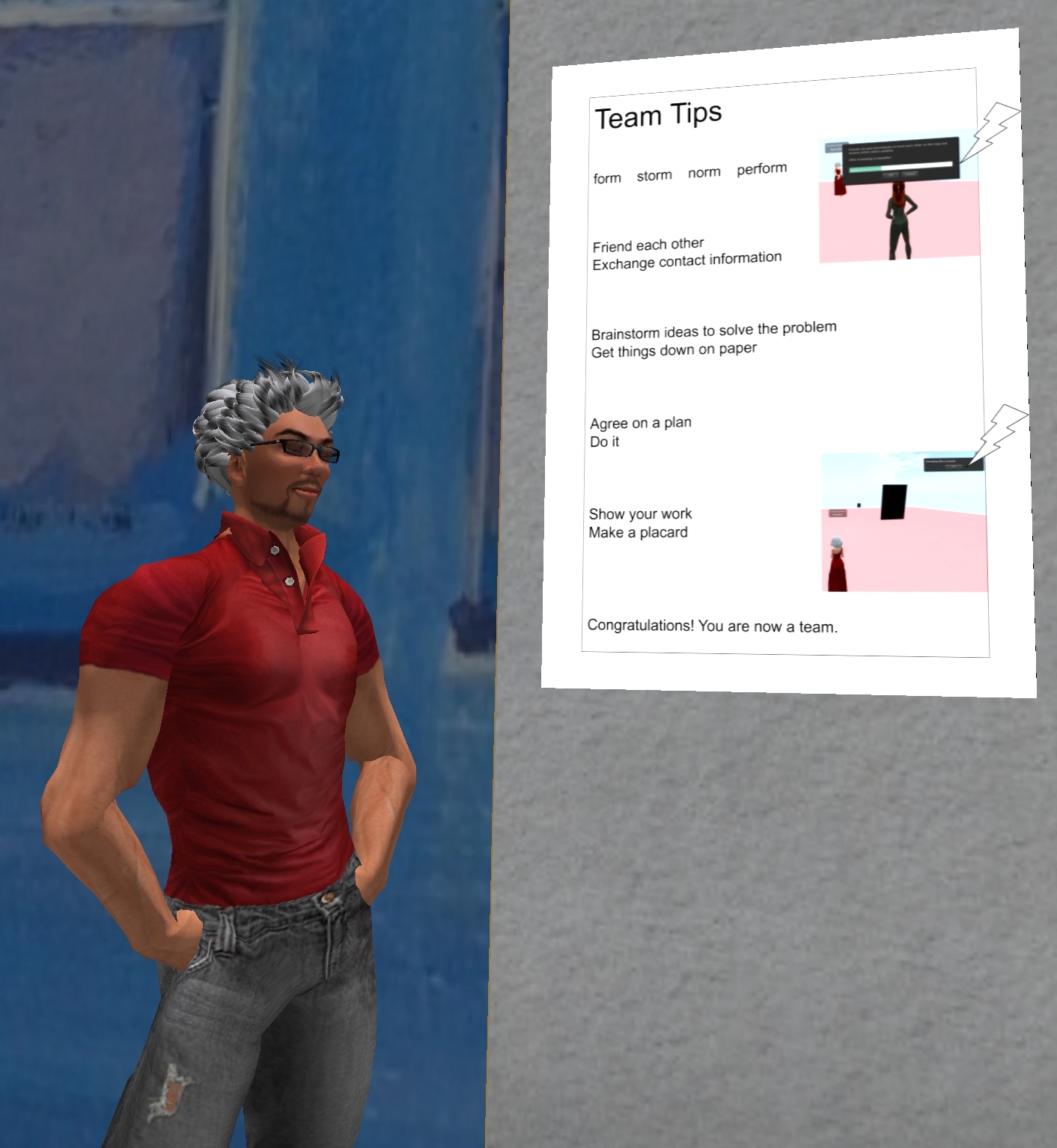 You will work on this project in your groups to make your presentation in an entertaining, informative and lively manner using whatever medium and format you wish as long as it can be stored for later review (e.g. a talk, short film, dramatic presentation, narration+visuals). Each team will present live in Second Life. The presentation should be no shorter than five minutes and no longer than ten minutes. You are encouraged to use visual, audio or any other aids to support the presentation during which each member of the team must take part.