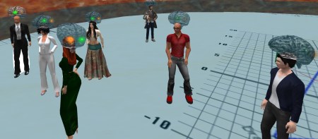 To close she gave us all a gift of a Brain Quester hat which floated a translucent brain above our avatar heads, and lit up with coloured bulbs when we moved! On behalf of the class John thanked Liss, Fran and Tooyaa for their generosity—it was a fascinating experience and we are all grateful to them for hosting us. John also thanked Site for making the introductions and arrangements.